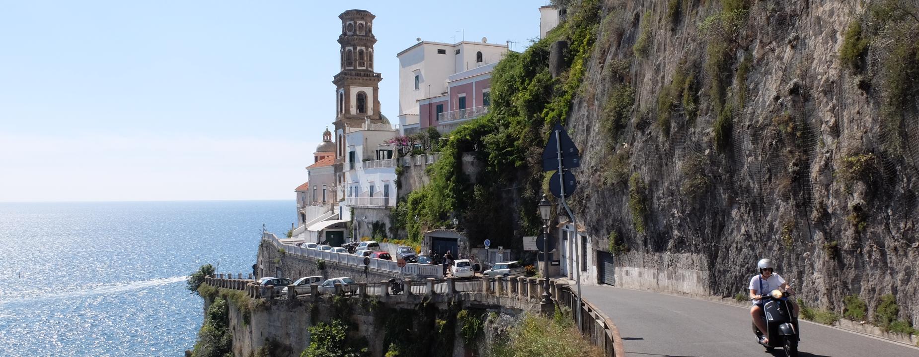 La Vespa est née en Italie: sur la côte amalfitaine ou en Toscane, elle est l'outil idéal pour flâner le nez au vent, s'arrêter dans les villages, descendre sur une jolie plage ou musarder entre les collines d'oliviers, d'un château à l'autre ! Nos séjours prévoient un bel hébergement fixe autour duquel vous rayonnerez à la découverte des merveilles du patrimoine italien sur la jolie Vespa que nous aurons réservée pour vous.